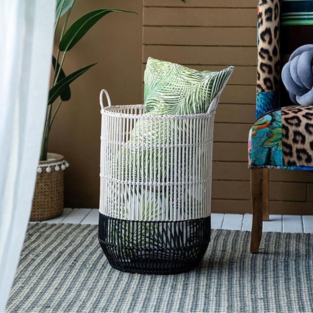 Black and White Rattan Basket (TSRTB-0012)