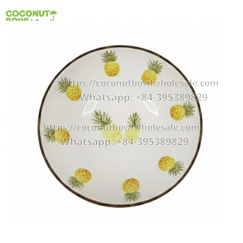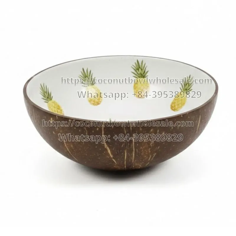 Lacquered coconut bowl with pineapple motif (TSCB-0089)