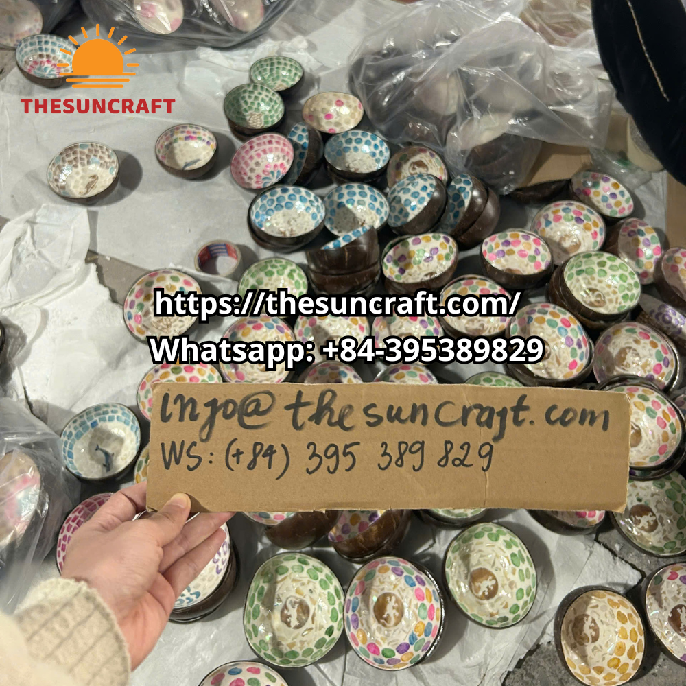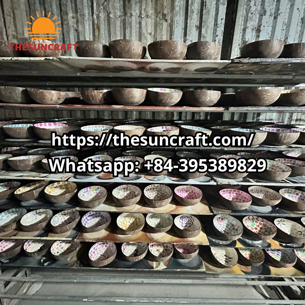 Lacquered coconut bowl with pineapple motif (TSCB-0089)