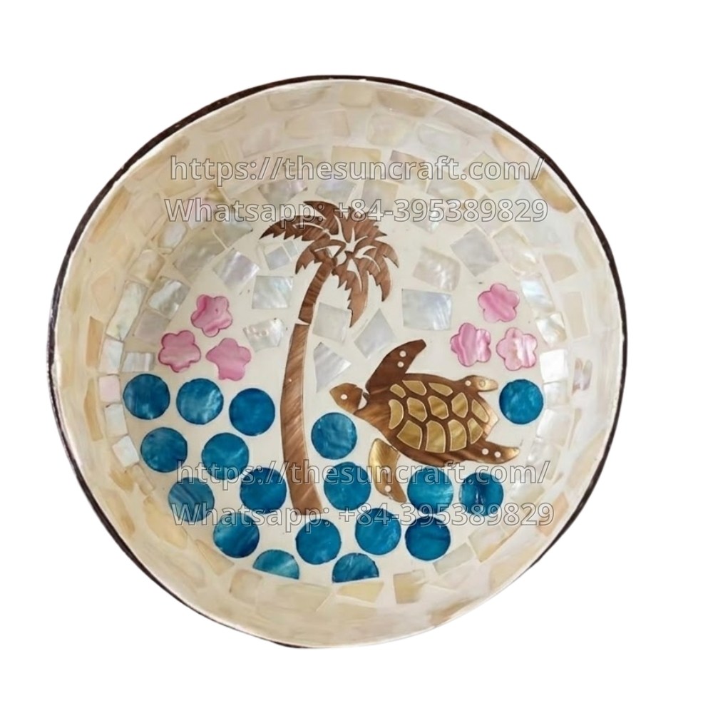 Mauritius Coconut Bowl with Turtle Inlay Made in Vietnam (TSCB-0107)