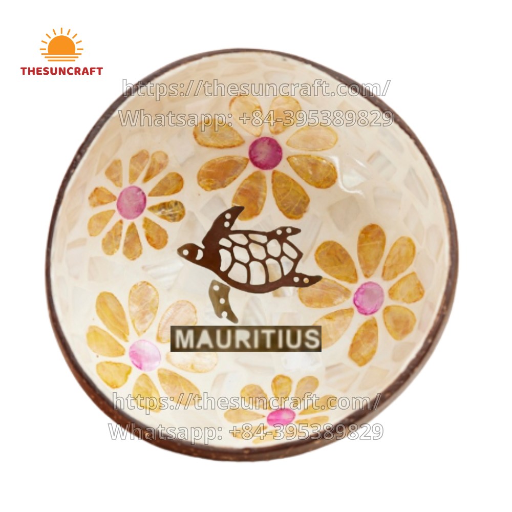 Mauritius Island Style Coconut Bowl Turtle Shape Pearl Inlay (TSCB-0113)